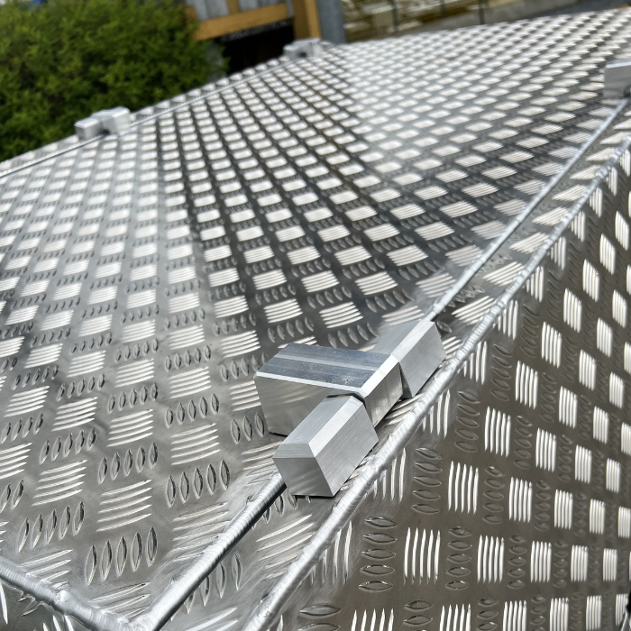 Diebstahlgeschützte Befestigung: Klotz aus Aluminium gefräst, Schrauben mit Diebstahlgeschütztem Antrieb