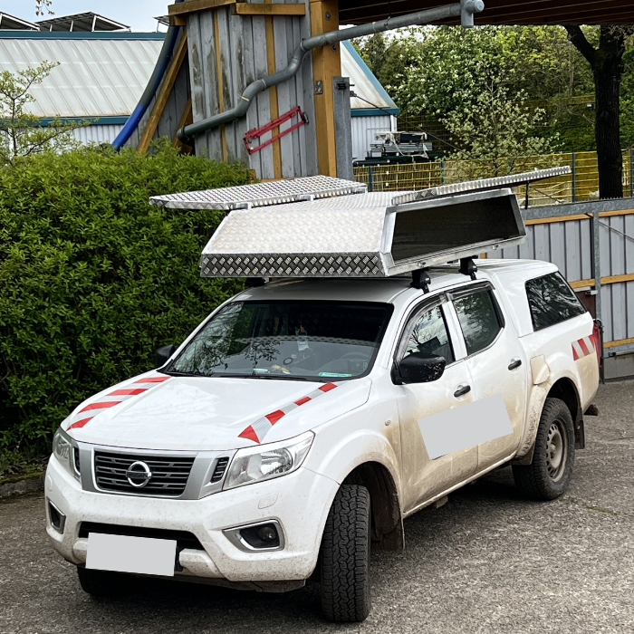 Beschläge gefräst aus Aluminium, korrosionsbeständig, Achse aus Chrom-Nickel-Stahl (V2A), hochwertige Sinter-Buchsen als Gleitlager, befestigt am Korpus mit EPDM beschichteter Unterlegscheibe (Wasserdichte Transportbox)